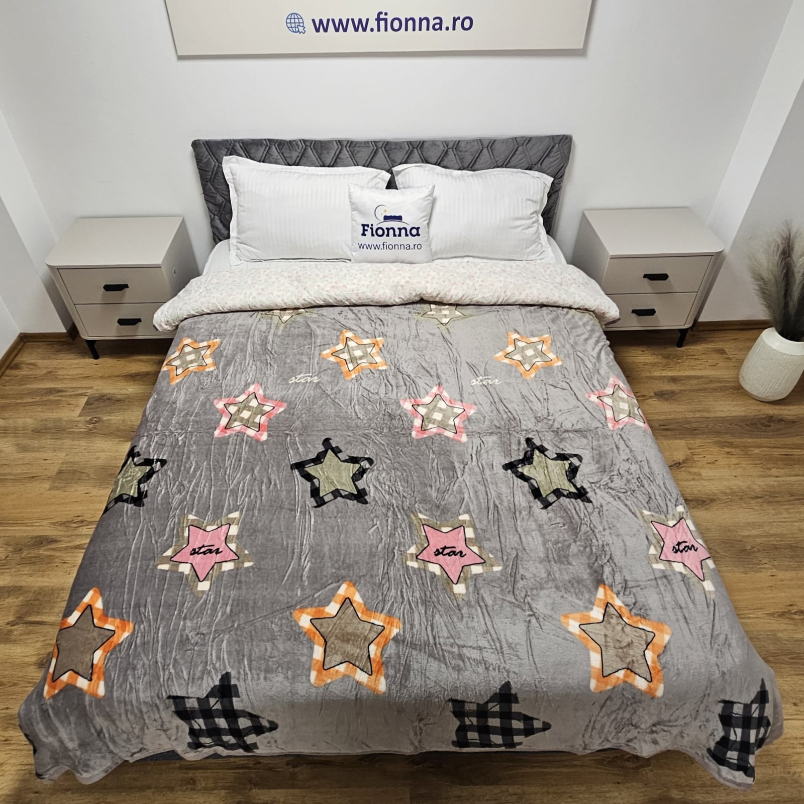 Patura Cocolino Grosime Medie 200x230cm - Gri Cu Stele Colorate