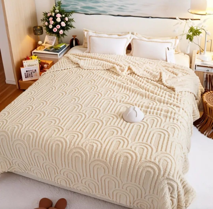 ❤️ Bucură-te de momente de relaxare cu această pătură în nuanțe calde de crem, decorată cu un model elegant cu arcade. Design-ul său subtil și rafinat aduce un aer modern și liniștitor în casă, potrivit pentru orice sezon. Fabricată dintr-un material moale și plăcut la atingere, oferă o senzație de confort și relaxare la fiecare utilizare. Ușoară, dar pufoasă, este ideală pentru clipele petrecute alături de cei dragi sau pentru momentele de liniște doar pentru tine.