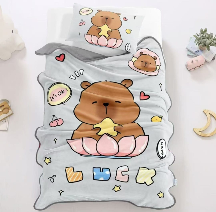 Pătură Cocolino pentru copii, dimensiune 100x140cm, cu imprimeu adorabil „Ursulețul Norocos”, aduce veselie și confort în camera celor mici. Designul simpatic cu ursulețul norocos stimulează imaginația și joaca, iar textura moale și catifelată oferă o senzație plăcută la atingere în orice moment al zilei. Perfectă pentru serile răcoroase, joacă sau odihnă, această pătură pufoasă și călduroasă devine rapid preferata copiilor – un cadou minunat și plin de bucurie.