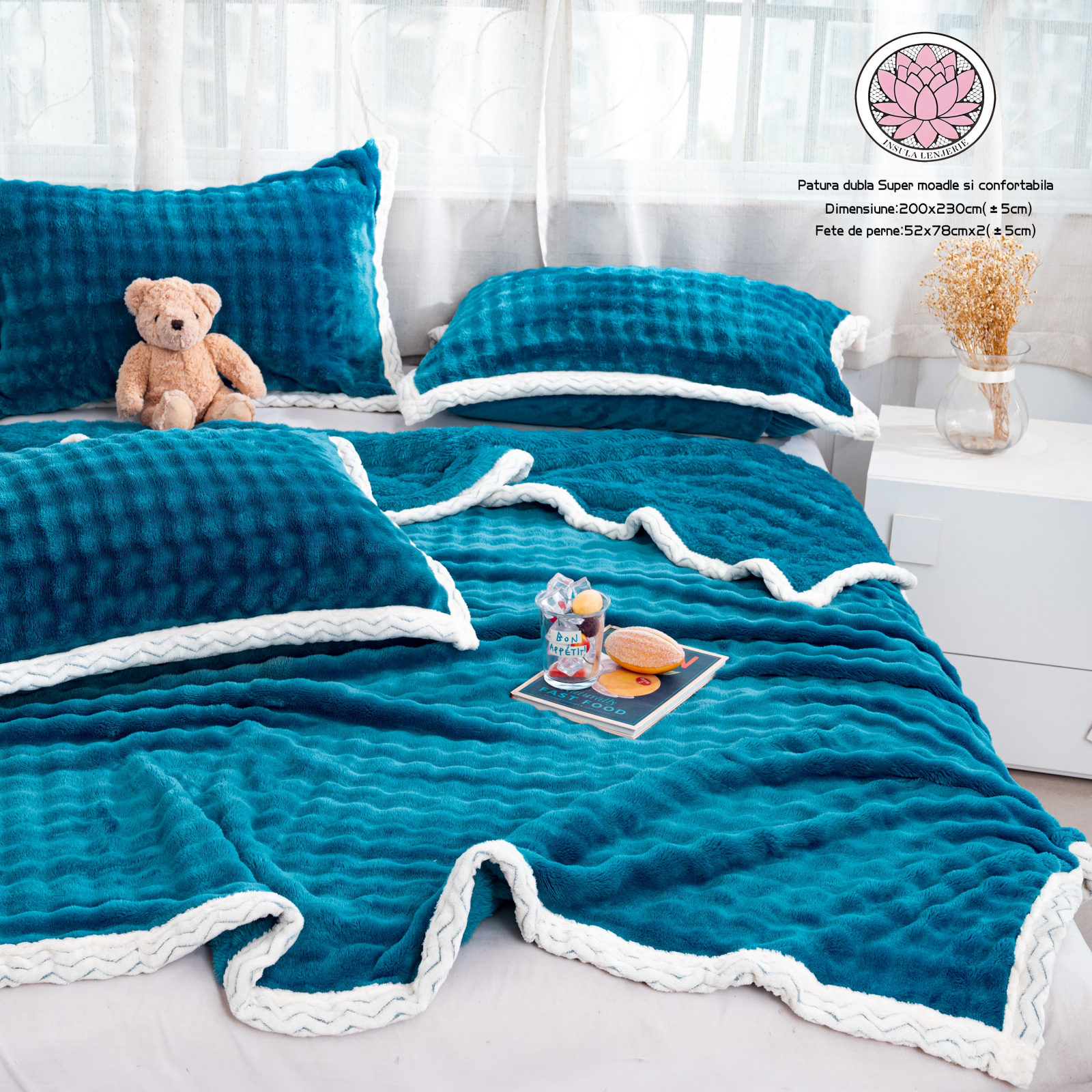 Pătura groasă, dublă, cu model deosebit cu bordura alba.