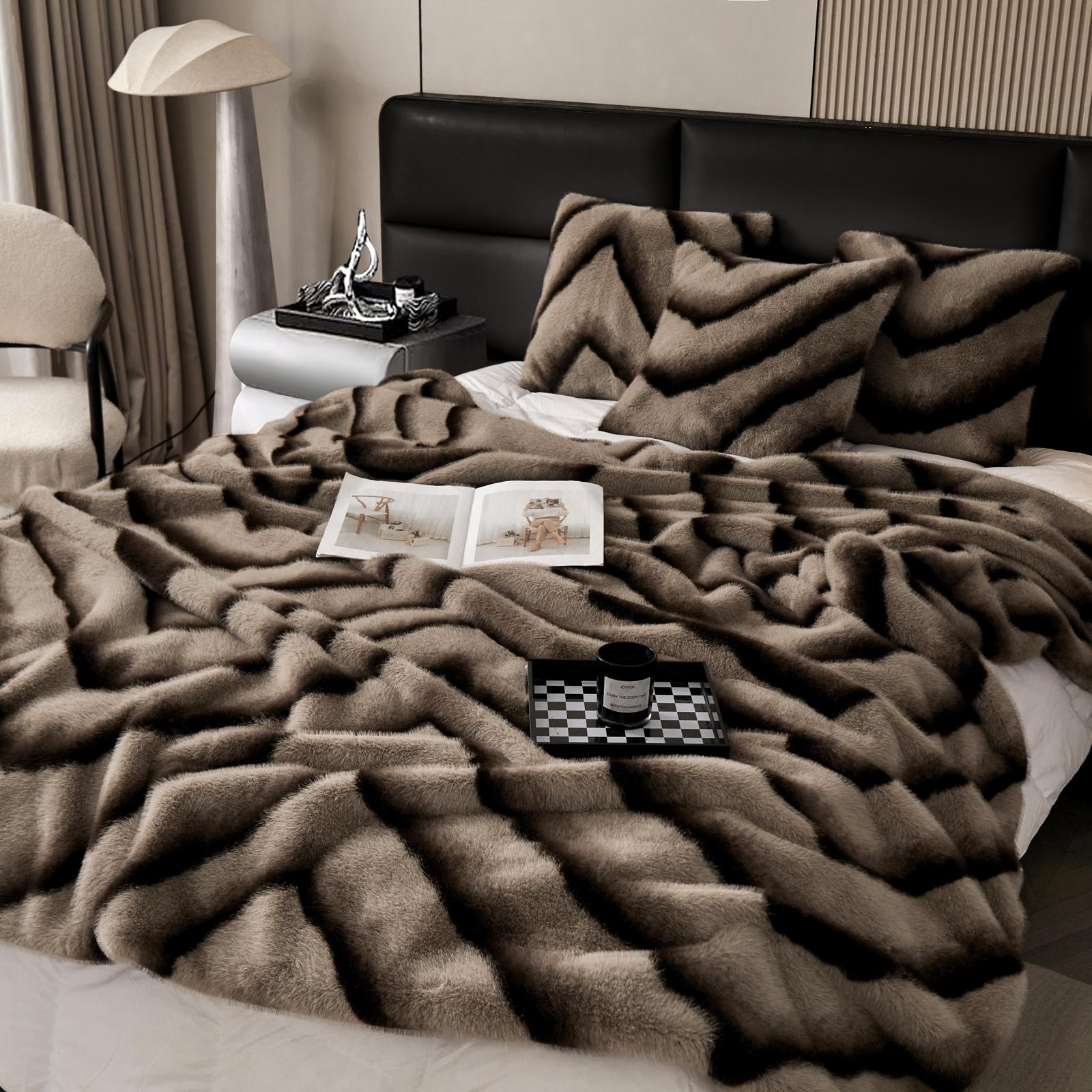 Transformă-ți dormitorul într-un sanctuar de lux și confort cu acest set de pătură cu fermoar și fețe de pernă din blană artificială de nurcă.