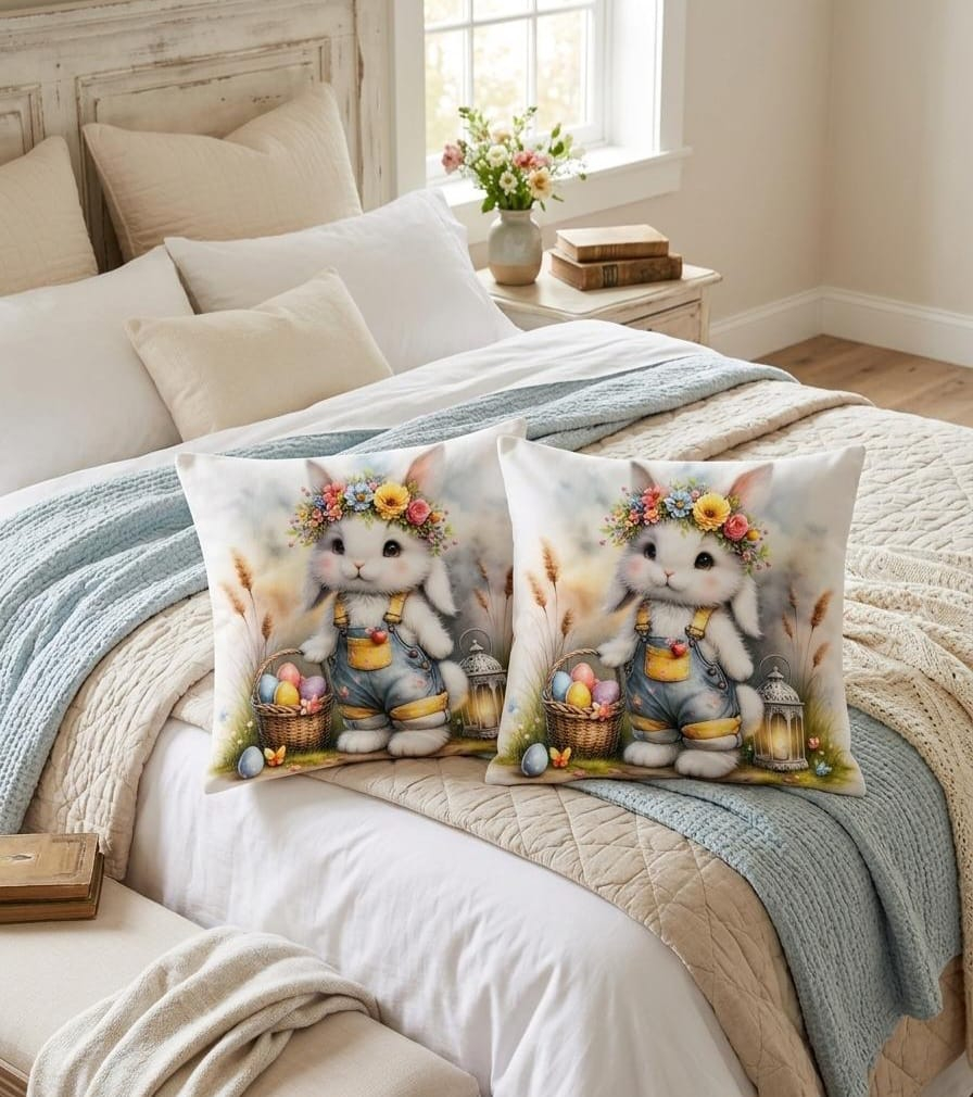 Adaugă un strop de magie pascală în dormitorul sau livingul tău cu Setul de 2 Pernuțe Decorative Fionna.