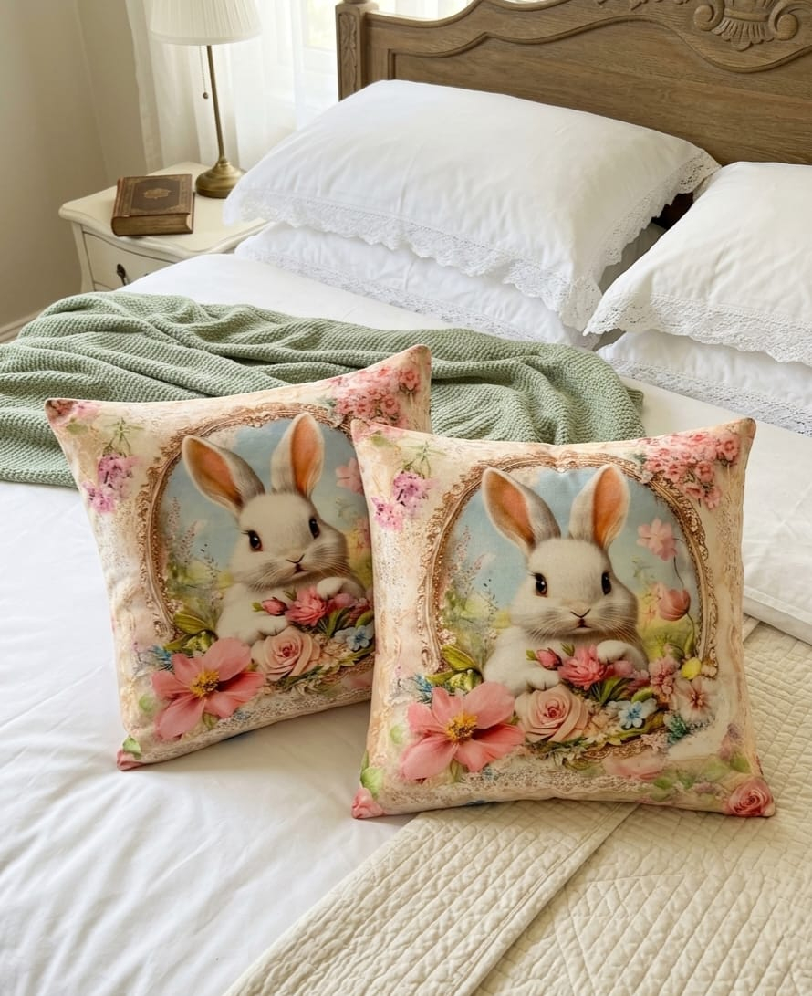 Adaugă un strop de magie pascală în dormitorul sau livingul tău cu Setul de 2 Pernuțe Decorative Fionna.
