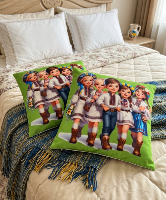 Set 2 Pernute Decorative 3D 45x45cm Din Catifea + Microfibra - Model Traditional Copii Cu Coronite