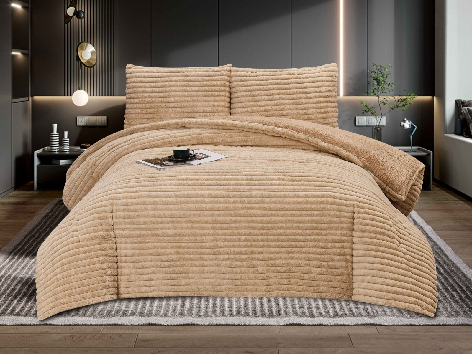 Materialul moale, exclusivist are o textură caldă și este atent ales pentru ca tu sa te bucuri din plin de timpul petrecut in dormitor si pentru a adăuga un plus de unicitate camerei tale.