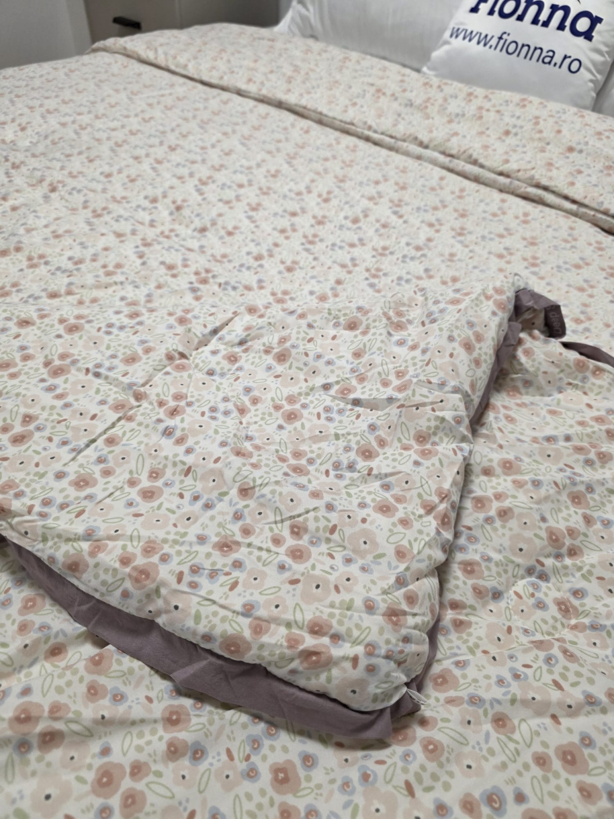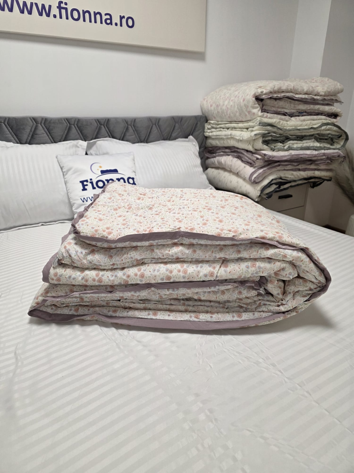 Pilota cu Banda Decorativa 200x230cm - Mov Prafuit cu Flori
