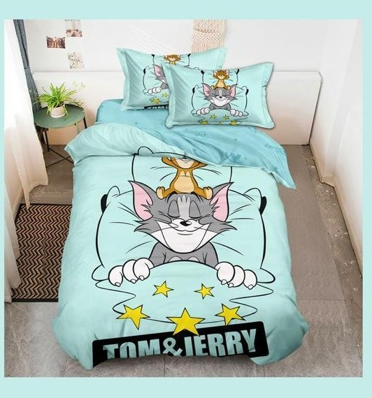 Lenjerie Din Bumbac Tip Finet Premium Pentru Copii 1 Persoana - Tom Si Jerry
