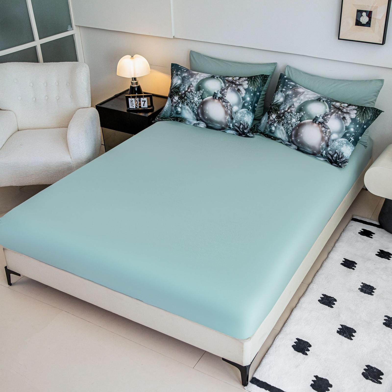 Cearceaful pentru pat si fetele de perna 70x70cm sunt UNI pe ambele parti.